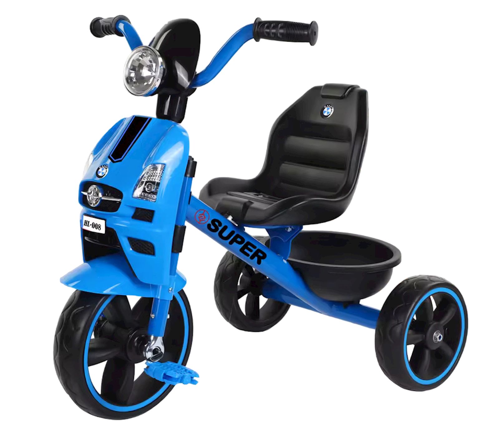 Uşaqlar üçün üçtəkərli velosiped UM001000791 mavi təkərlərlə və rezin şinlərlə etibarlı və təhlükəsiz seçimdir. Xüsusi arxalıq oturacağı 1-dən 6 yaşadək uşaqlara rahatlıq və dəstək təmin edir. Çin istehsalıdır. Çəkisi 18 kq, möhkəm quruluşu və parlaq mavi rəngi var.